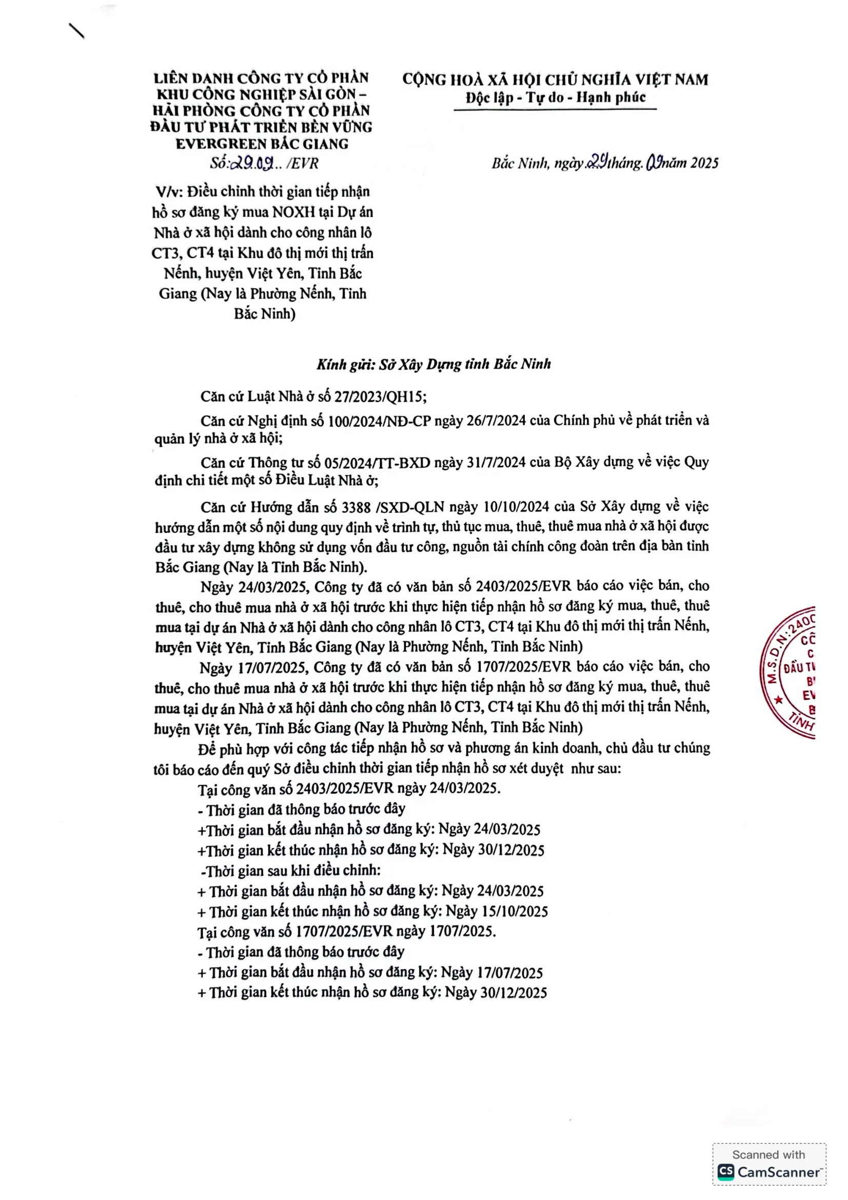 Nội dung: Công văn điều chỉnh thời gian tiếp nhận hồ sơ lô CT3, CT4