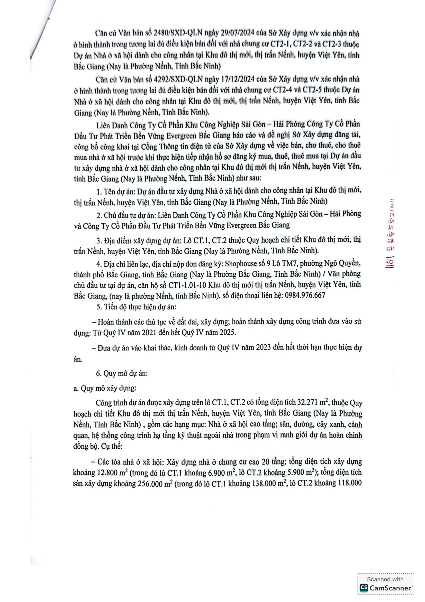 tại Dự án nhà ở xã hội dành cho công nhân tại Khu đô thị mới thị trấn Nếnh, huyện Việt Yên, tỉnh Bắc Giang (Nay là Phường Nếnh, Tỉnh Bắc Ninh)