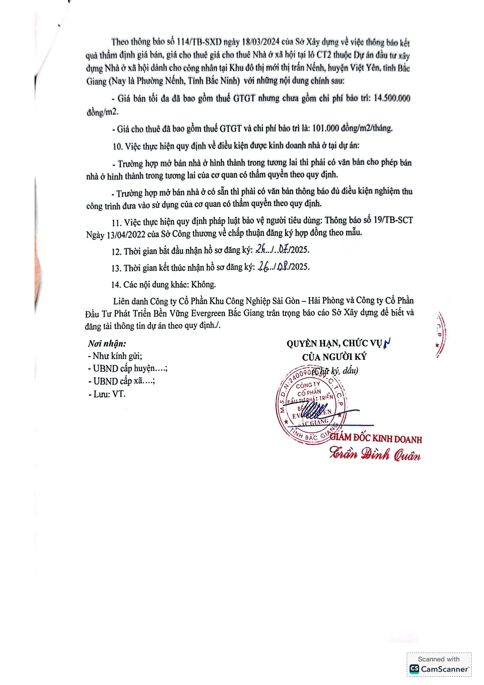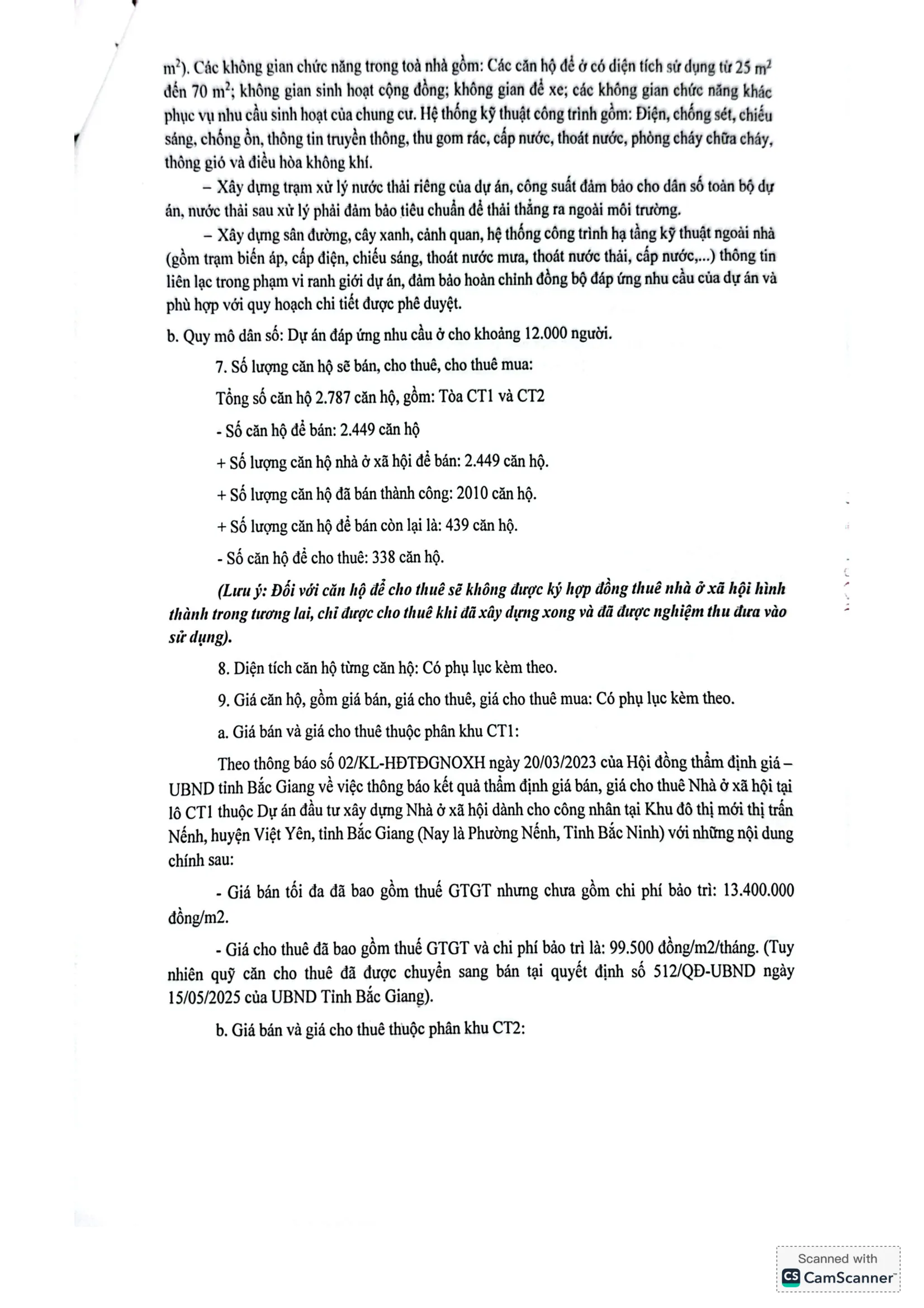Thông báo Việc bán, cho thuê, cho thuê mua nhà ở xã hội lô CT1, CT2