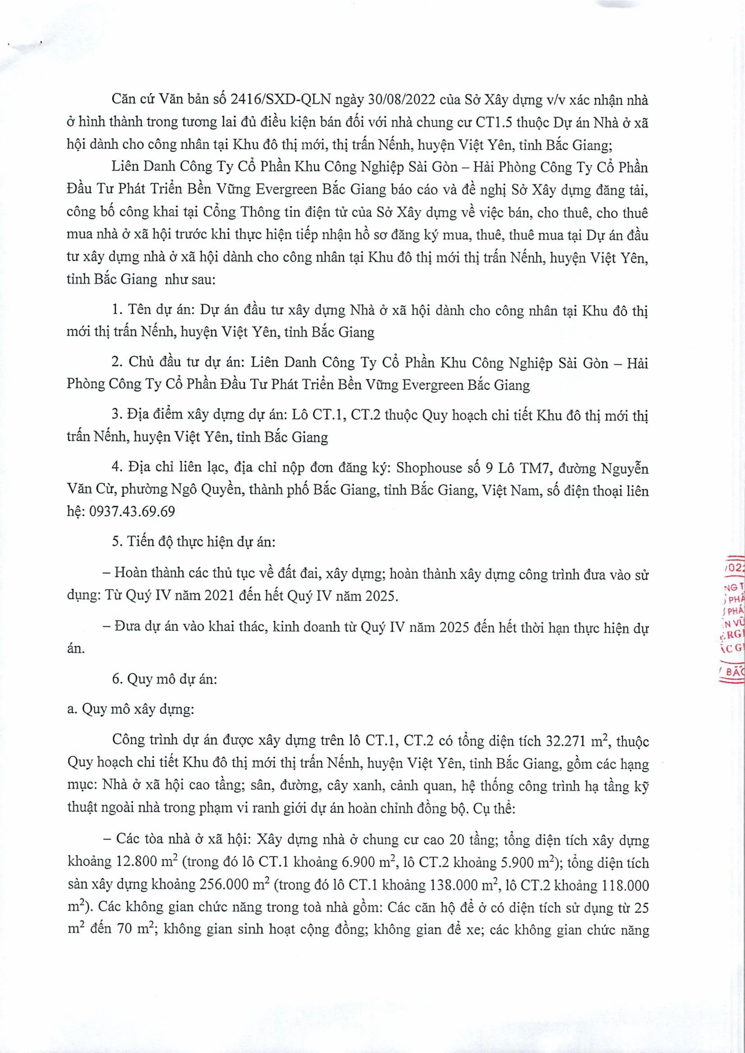 Thông báo Việc bán, cho thuê, cho thuê mua nhà ở xã hội lô CT1,CT2